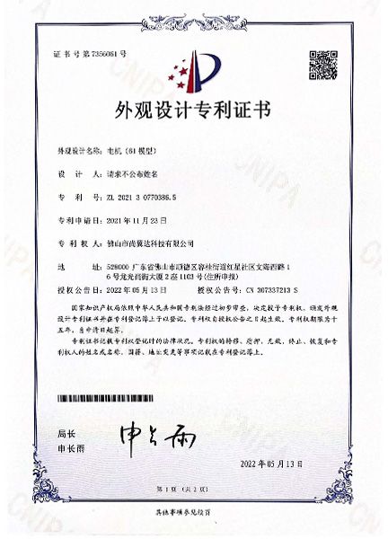 The company's main business projects include a series of research and development, design, production, and sales of motors, motor accessories, motor control systems, and motor drive systems. Our products are widely used in various household appliances, such as circulation fans, air purifiers, heaters, air fryers, etc. The company has obtained multiple patents, and in the future, we will also devote more energy to technology research and development, implement the concept of "life requires technology, technology improves life", and create better products for downstream customers and end consumers.